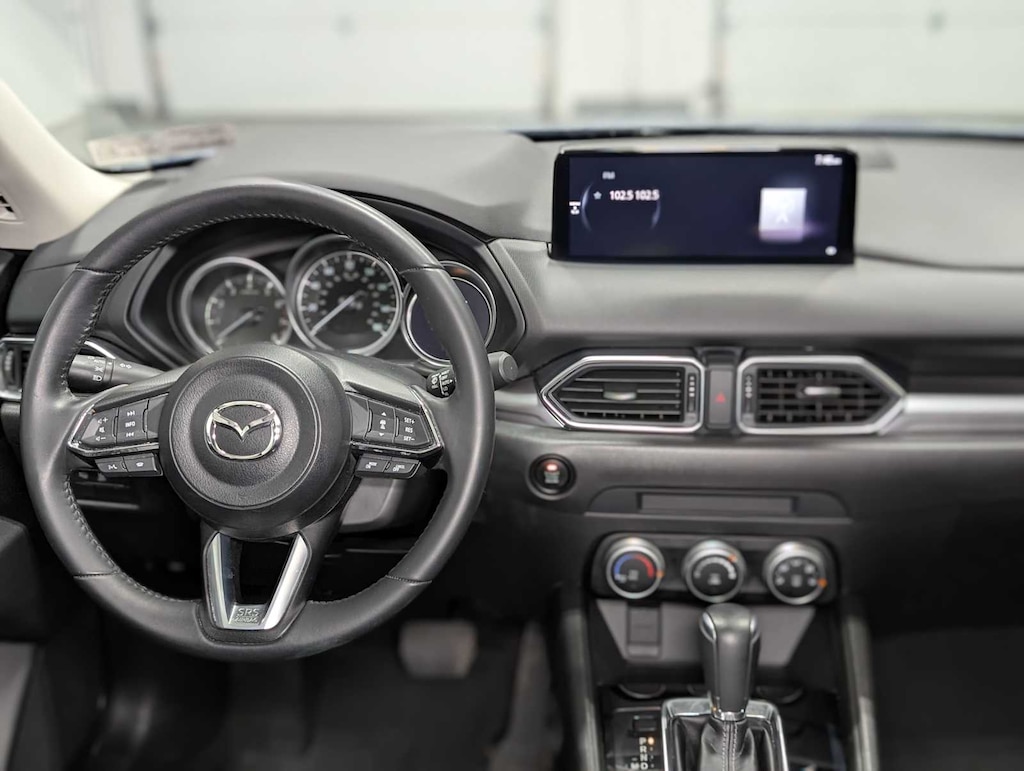 All Wheel Drive, Keyless Entry, Keyless Start, WiFi Hotspot, Lane Keeping Assist, iPod/MP3 Input, Leather Wrapped Steering Wheel, Back-Up Camera, Apple CarPlay®, Aluminum Wheels, Onboard Communications System, Brake Actuated Limited Slip Differential, Electronic Stability Control, Smart Device Integration, Blind Spot Monitor. Rear Spoiler, MP3 Player, Remote Trunk Release, Child Safety Locks, Steering Wheel Controls. 2023 Mazda CX-5 with Eternal Blue Mica exterior and Black interior features a 4 Cylinder Engine with 187 HP at 6000 RPM*. Serviced here, Originally bought here, Locally Owned and Traded