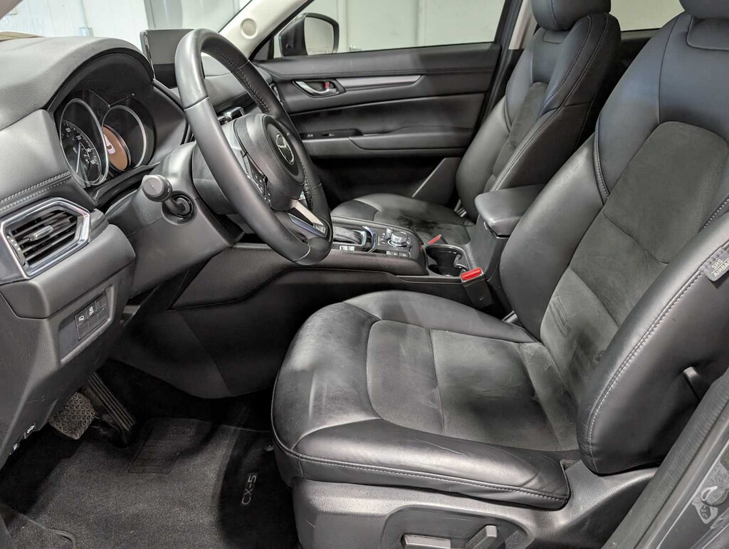 All Wheel Drive, Heated Driver Seat, Keyless Entry, Keyless Start, WiFi Hotspot, Lane Keeping Assist, iPod/MP3 Input, Leather Wrapped Steering Wheel, Back-Up Camera, Dual Zone A/C, Apple CarPlay®, Aluminum Wheels, Onboard Communications System, Brake Actuated Limited Slip Differential, Electronic Stability Control. Rear Spoiler, MP3 Player, Privacy Glass, Remote Trunk Release, Child Safety Locks. 2023 Mazda CX-5 with Machine Gray Metallic exterior and Black interior features a 4 Cylinder Engine with 187 HP at 6000 RPM*. Serviced here, Originally bought here, Locally Owned and Traded