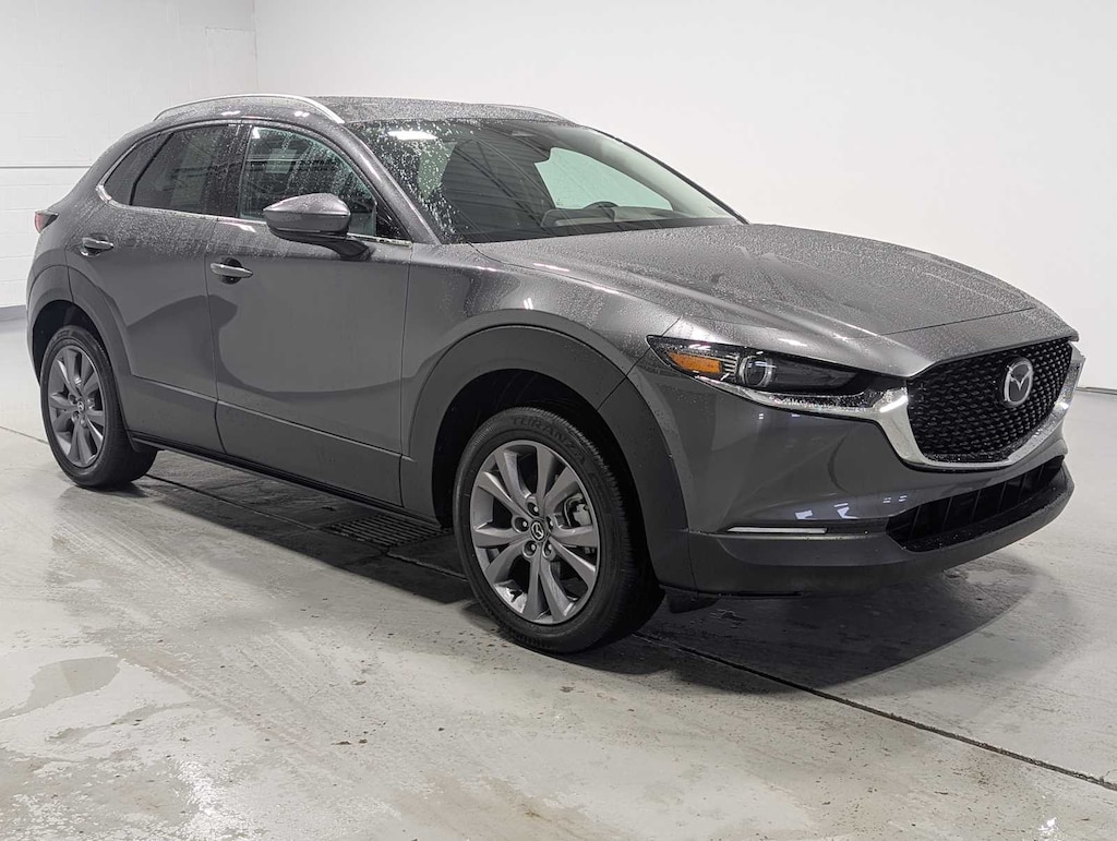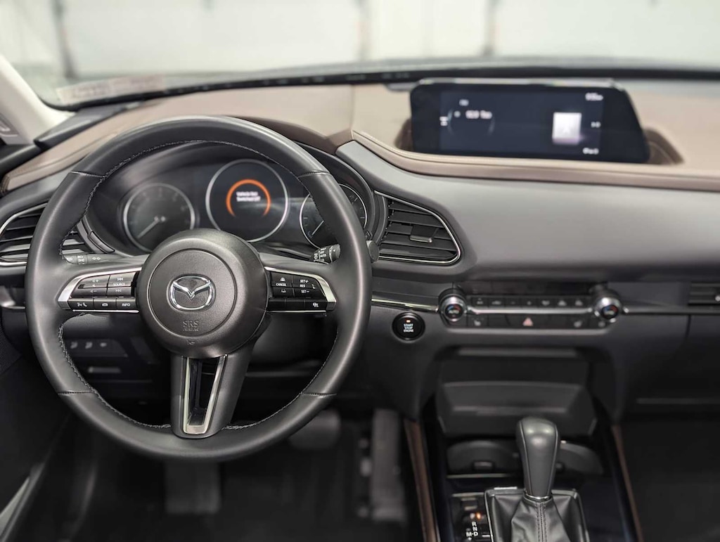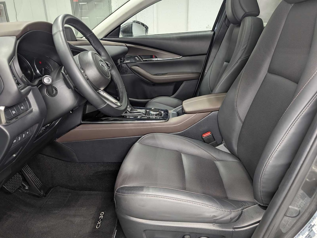 All Wheel Drive, Heated Driver Seat, Leather Seats, Keyless Entry, Remote Engine Start, WiFi Hotspot, Navigation, Power Liftgate, Satellite Radio, Lane Keeping Assist, iPod/MP3 Input, Power Tilt/Sliding Sunroof, Leather Wrapped Steering Wheel, Premium Sound System, Back-Up Camera Rear Spoiler, MP3 Player, Privacy Glass, Remote Trunk Release, Child Safety Locks. 2025 Mazda CX-30 with Machine Gray Metallic exterior and Black w/Brown interior features a 4 Cylinder Engine with 191 HP at 6000 RPM*. Serviced here, Originally bought here, Locally Owned and Traded