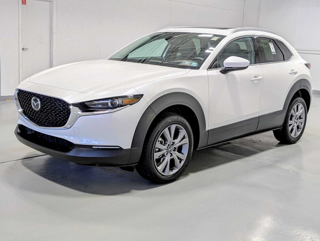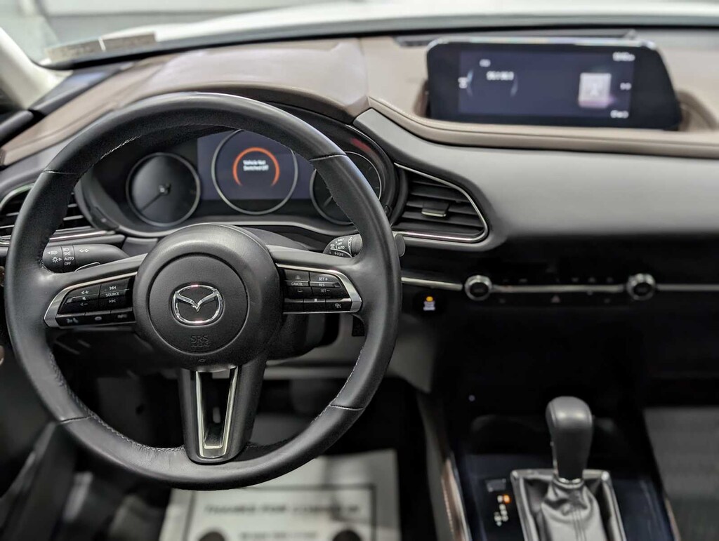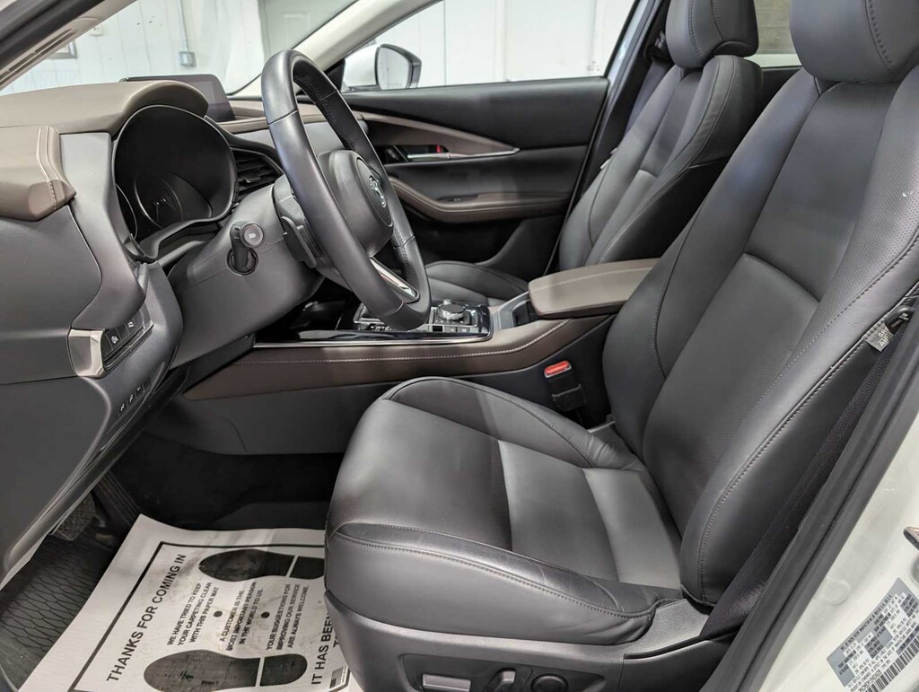 All Wheel Drive, Heated Driver Seat, Leather Seats, Keyless Entry, Remote Engine Start, WiFi Hotspot, Navigation, Power Liftgate, Satellite Radio, Lane Keeping Assist, iPod/MP3 Input, Power Tilt/Sliding Sunroof, Leather Wrapped Steering Wheel, Premium Sound System, Back-Up Camera. Rear Spoiler, MP3 Player, Privacy Glass, Remote Trunk Release, Child Safety Locks. 2025 Mazda CX-30 with Snowflake White Pearl Mica exterior and Black w/Brown interior features a 4 Cylinder Engine with 191 HP at 6000 RPM*. Serviced here, Originally bought here, Locally Owned and Traded