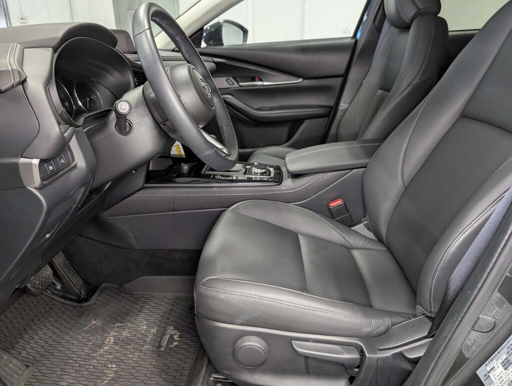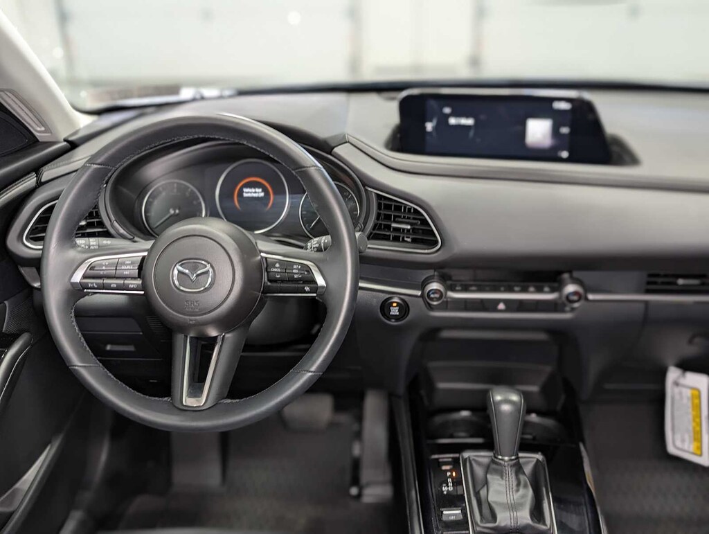 All Wheel Drive, Keyless Entry, Remote Engine Start, WiFi Hotspot, Lane Keeping Assist, iPod/MP3 Input, Leather Wrapped Steering Wheel, Back-Up Camera, Dual Zone A/C, Apple CarPlay®, Aluminum Wheels, Onboard Communications System, Brake Actuated Limited Slip Differential, Electronic Stability Control, Smart Device Integration Rear Spoiler, MP3 Player, Privacy Glass, Child Safety Locks, Steering Wheel Controls. 2025 Mazda CX-30 with Machine Gray Metallic exterior and Black interior features a 4 Cylinder Engine with 191 HP at 6000 RPM*. Serviced here, Originally bought here, Locally Owned and Traded