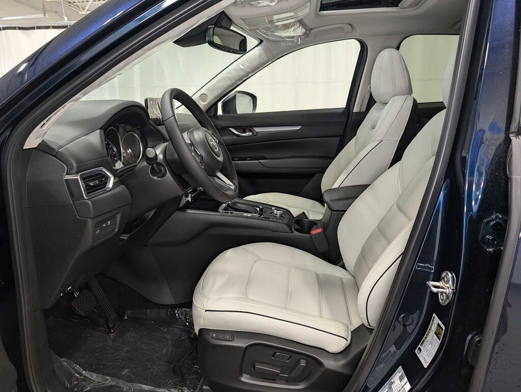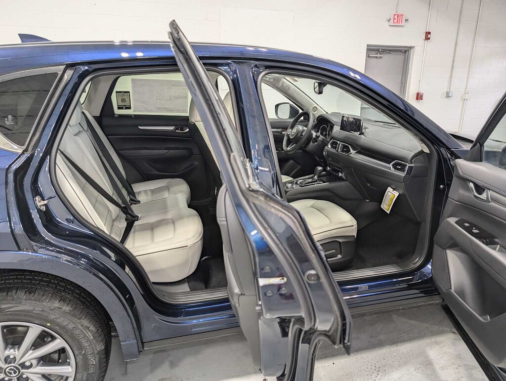 All Wheel Drive, Heated Driver Seat, Leather Seats, Keyless Entry, Keyless Start, WiFi Hotspot, Power Liftgate, Lane Keeping Assist, iPod/MP3 Input, Power Tilt/Sliding Sunroof, Leather Wrapped Steering Wheel, Back-Up Camera, Dual Zone A/C, Apple CarPlay®, Aluminum Wheels. Rear Spoiler, MP3 Player, Privacy Glass, Remote Trunk Release, Child Safety Locks. 2025 Mazda CX-5 with Deep Crystal Blue Mica exterior and Parchment interior features a 4 Cylinder Engine with 187 HP at 6000 RPM*. Serviced here, Originally bought here