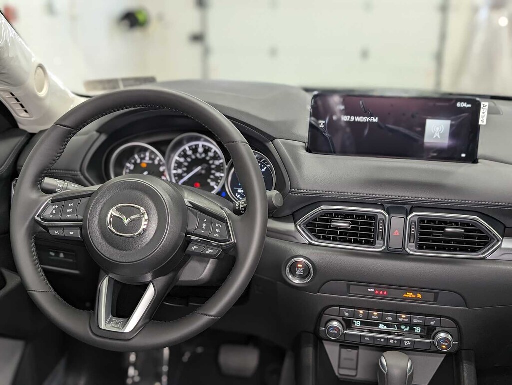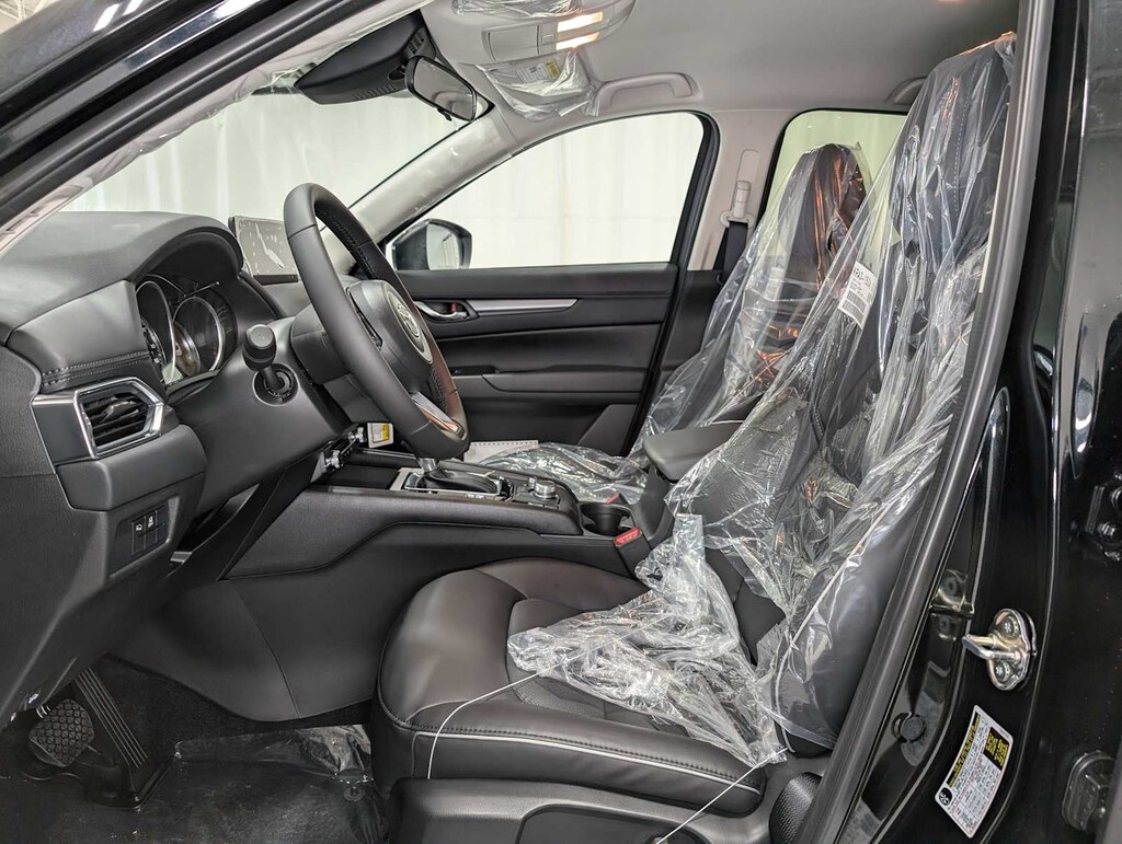 All Wheel Drive, Heated Driver Seat, Keyless Entry, Remote Engine Start, WiFi Hotspot, Lane Keeping Assist, iPod/MP3 Input, Leather Wrapped Steering Wheel, Back-Up Camera, Dual Zone A/C, Apple CarPlay®, Aluminum Wheels, Onboard Communications System, Brake Actuated Limited Slip Differential, Electronic Stability Control Rear Spoiler, MP3 Player, Privacy Glass, Remote Trunk Release, Child Safety Locks. 2025 Mazda CX-5 with Jet Black Mica exterior and Black interior features a 4 Cylinder Engine with 187 HP at 6000 RPM*. Serviced here, Originally bought here
