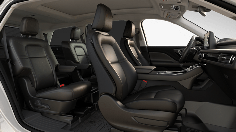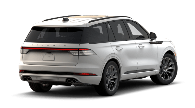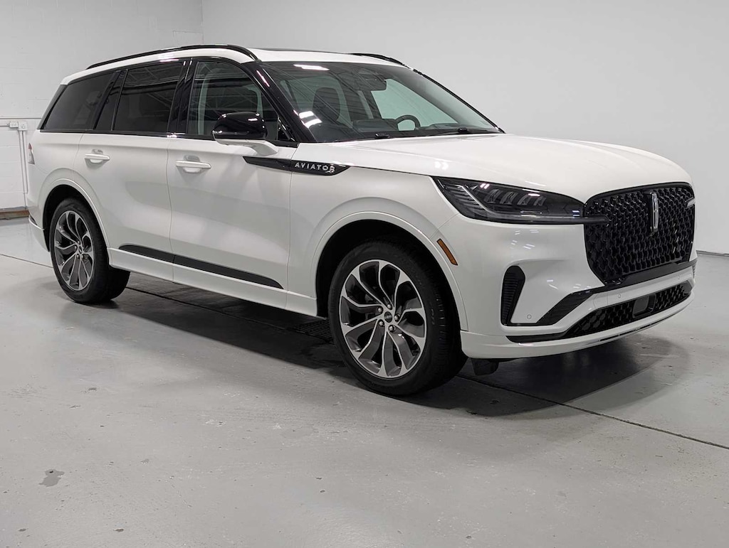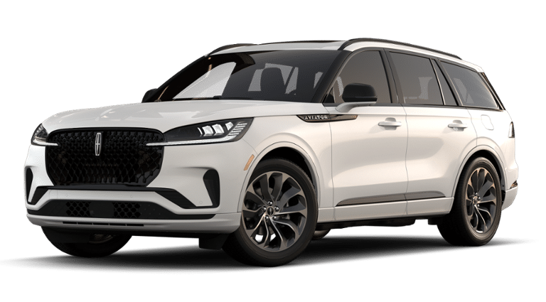 EQUIPMENT GROUP 101A Heated 2nd Row Seats, Advanced Heads-Up Display, Auto Air Refresh, Wireless Charging, Radio: Revel Audio System w/14 Speakers, JET APPEARANCE PACKAGE Wheels: 21 Bright-Machined Aluminum, dark alloy-painted pockets, Tires: 275/45R21 All-Season, Black Exterior Elements, grille insert, plinth and surround, fender/door badging, front/rear door spears, glass surrounds and roof rails, Body-Color Exterior Elements, lower front and rear fascia, door cladding and wheel lips, TRANSMISSION: 10-SPEED AUTOMATIC W/SELECTSHIFT (STD). 2025 Lincoln Aviator with Pristine White Metallic Tri-Coat exterior and Onyx interior features a V6 Cylinder Engine with 400 HP at 5500 RPM*.