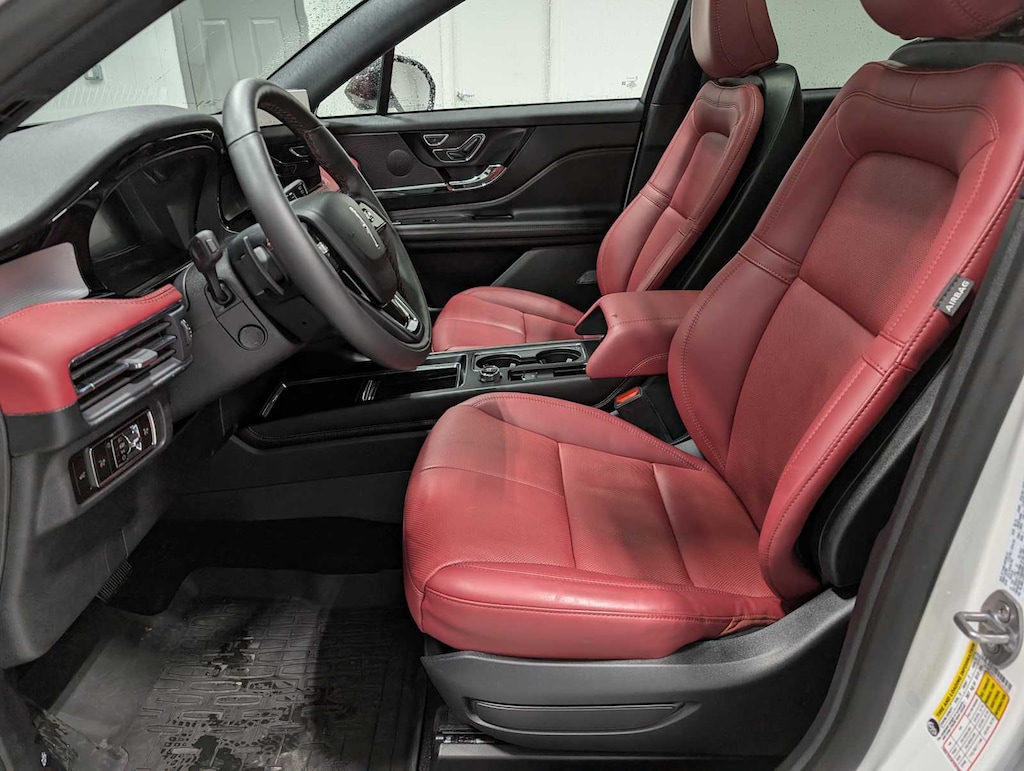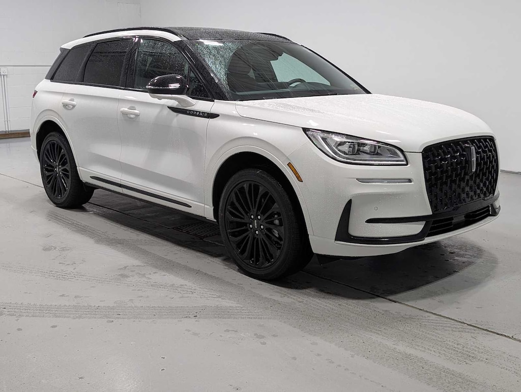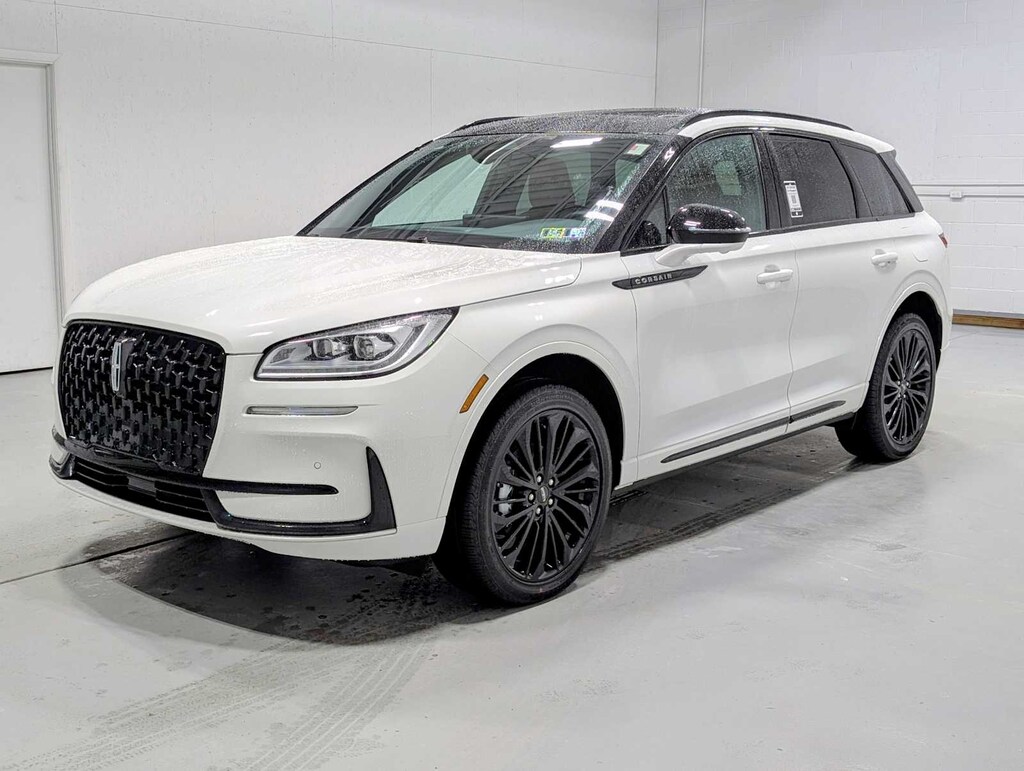 JET APPEARANCE PACKAGE Wheels: 20 Black Aluminum, Tires: 245/45R20 99V-Rated All-Season BSW, Pillar Black Exterior Elements, grille upper design, roof-rack side rails, fender badge, door frame molding and front and rear door spears, Body-Color Exterior Elements, front and rear bumper, lower fascia, wheel lips and lower door cladding, PANORAMIC VISTA ROOF W/POWER SHADE Black Roof Rack Side Rails, 17 MINI STEEL SPARE WHEEL T155/70D17 Spare Tire, EQUIPMENT GROUP 201A Hands-Free Liftgate, 2 Additional USB Ports in Rear of Center Console, illuminated types C and C, Lincoln Co-Pilot360 Vision 2.0, Front Parking Sensors, Reverse Brake Assist, 360-Degree Camera, sideview mirror security approach lamps, Post-Collision Braking, Rain Sensing Wipers, Power Tilt/Telescoping Steering Column w/Memory, Phone As A Key (PAAK), Frameless Auto Dimming Rearview Mirror, Heated/Ventilated Driver & Front Passenger Seats, 60/40 EasyFold Rear Seat w/Power Seatback Release, Windshield Wiper De-Icer, Universal Garage Door Opener, Heated Sideview Mirrors, auto dimming, auto fold, black cap, memory, Lincoln logo welcome mat and turn signal indicators, Heated Steering Wheel, Wireless Charging Pad. 2025 Lincoln Corsair with Pristine White Metallic Tri-Coat exterior and Ebony/Eternal Red interior features a 4 Cylinder Engine with 250 HP at 5500 RPM*.