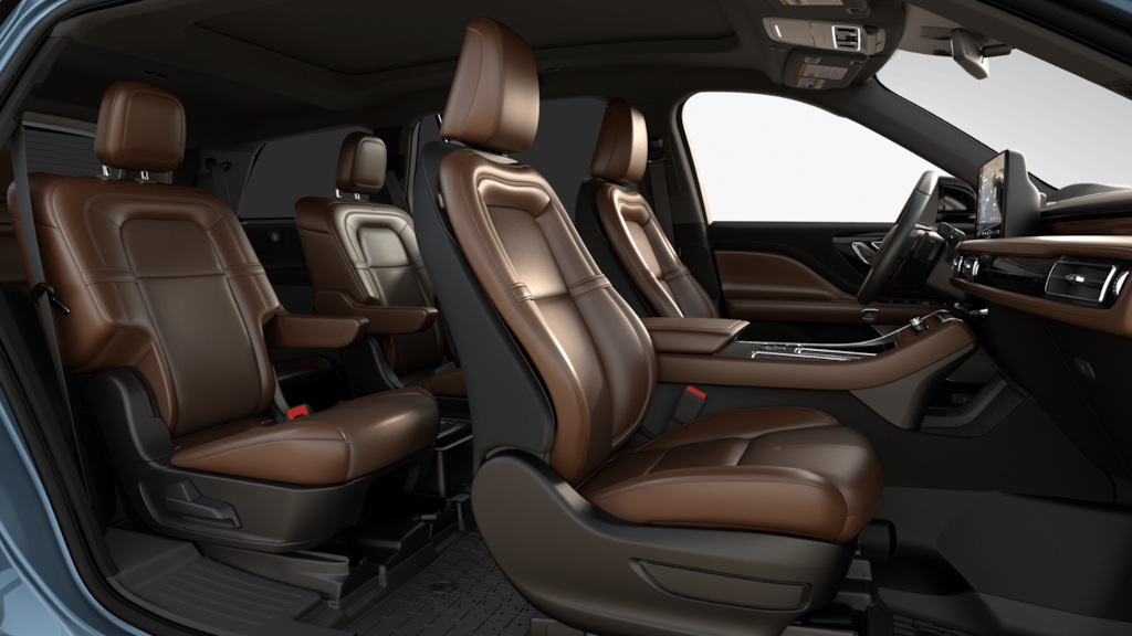 JET APPEARANCE PACKAGE 275/40R22 107 W-Rated Tires, 22 Black Aluminum Wheels, adaptive suspension, Adaptive suspension includes noise reduction module and sound insulation pack, Black Exterior Elements, grille insert, plinth and surround, fender/door badging, front/rear door spears, glass surrounds and roof rails, Body-Color Exterior Elements, lower front and rear fascia, door cladding and wheel lips, 10-SPEED AUTOMATIC TRANSMISSION W/SELECTSHIFT CAPABILITY (STD), EQUIPMENT GROUP 200A RESERVE I Advanced Heads-Up Display, Auto Air Refresh. 2026 Lincoln Aviator with Whisper Blue Metallic Clearcoat exterior and Hot Chocolate interior features a V6 Cylinder Engine with 400 HP at 5500 RPM*.