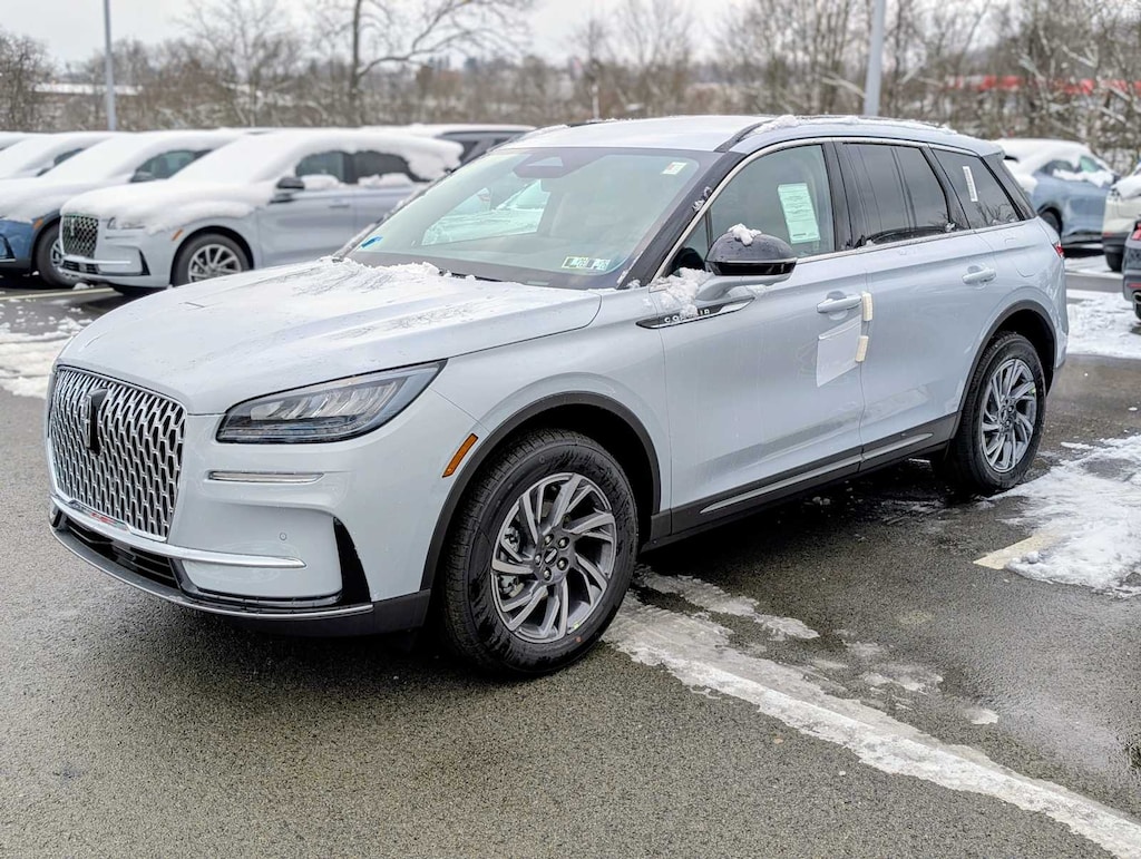 EQUIPMENT GROUP 101A PREMIERE II 18 Bright Machined Aluminum Wheels w/Dark Tarnish Finish, Hands-Free Liftgate, 2 Additional USB Ports (Illuminated Types C & C) - Rear of Center Console, Lincoln Co-Pilot360 Vision 2.0, Incremental to the standard Lincoln Co-Pilot360 2.1 features, Refer to the standard base series page for feature listings, Front Parking Sensors, Reverse Brake Assist, 360-Degree Camera, Post-Collision Braking, Rain Sensing Wipers, System must be turned off before entering an automatic car wash, Power Tilt/Telescoping Steering Column w/Memory, Phone As A Key (PAAK), Available on select vehicles, Requires feature activation, Not compatible w/all mobile phones, Frameless Auto Dimming Rearview Mirror, 60/40 EasyFold Rear Seat w/Power Seatback Release, Windshield Wiper De-Icer, 17 MINI STEEL SPARE WHEEL T155/70D17 Spare Tire. 2026 Lincoln Corsair with Crystal White Metallic Clearcoat exterior and Light Smoked Truffle interior features a 4 Cylinder Engine with 250 HP at 5500 RPM*.