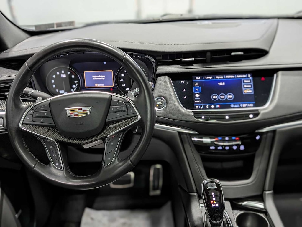 ENHANCED VISIBILITY AND TECHNOLOGY PACKAGE includes (UHS) 8 color gauge cluster, (UV6) Head-Up Display, (UV2) HD Surround Vision, (UKK) Rear Pedestrian Alert, (DRZ) Rear Camera Mirror, (CWA) Rear Camera Mirror Washer and (UKG) Automatic Parking Assist with braking, LPO, ALL-WEATHER FLOOR LINERS, FRONT AND REAR, ENGINE, 3.6L V6, DI, VVT, WITH AUTOMATIC STOP/START (310 hp [231 kW] @ 6600 rpm, 271 lb-ft of torque [366 N-m] @ 5000 rpm) (STD), TRANSMISSION, 9-SPEED AUTOMATIC (STD). 2020 Cadillac XT5 with Stellar Black Metallic exterior and Jet Black interior features a V6 Cylinder Engine with 310 HP at 6600 RPM*.