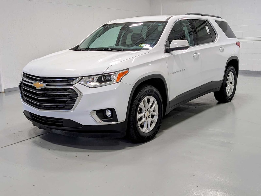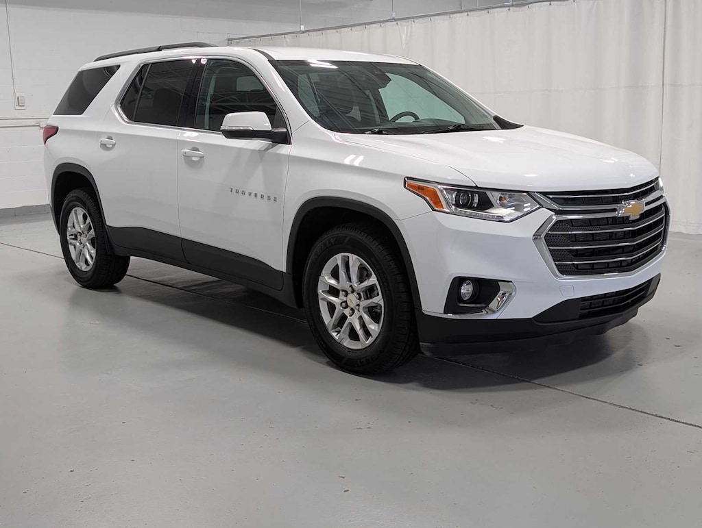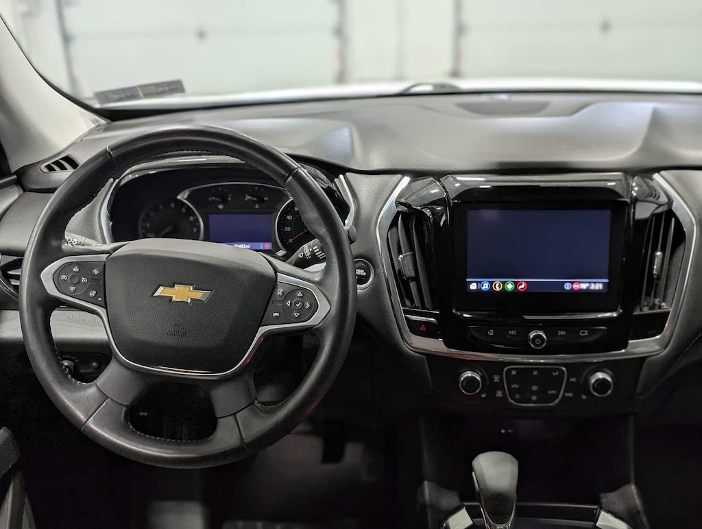 CHEVY SAFETY ASSIST includes (UHY) Automatic Emergency Braking, (UKJ) Front Pedestrian Braking, (UHX) Lane Keep Assist with Lane Departure Warning, (UE4) Following Distance Indicator, (UEU) Forward Collision Alert and (TQ5) IntelliBeam, LT CLOTH PREFERRED EQUIPMENT GROUP Includes Standard Equipment, AUDIO SYSTEM, CHEVROLET INFOTAINMENT 3 PLUS SYSTEM 8 diagonal HD color touchscreen, AM/FM stereo, Bluetooth® audio streaming for 2 active devices, Apple CarPlay® and Android Auto® capable, voice recognition, in-vehicle apps, cloud connected personalization for select infotainment and vehicle settings. Subscription required for enhanced and connected services after trial period (STD), STEERING WHEEL, HEATED includes AUTO heated steering wheel (selectable automatic activation), ENGINE, 3.6L V6, SIDI, VVT (310 hp [232.0 kW] @ 6800 rpm, 266 lb-ft of torque [361 N-m] @ 2800 rpm) (STD), TRANSMISSION, 9-SPEED AUTOMATIC (STD). 2021 Chevrolet Traverse with Summit White exterior and Jet Black interior features a V6 Cylinder Engine with 310 HP at 6800 RPM*. Has New Tires