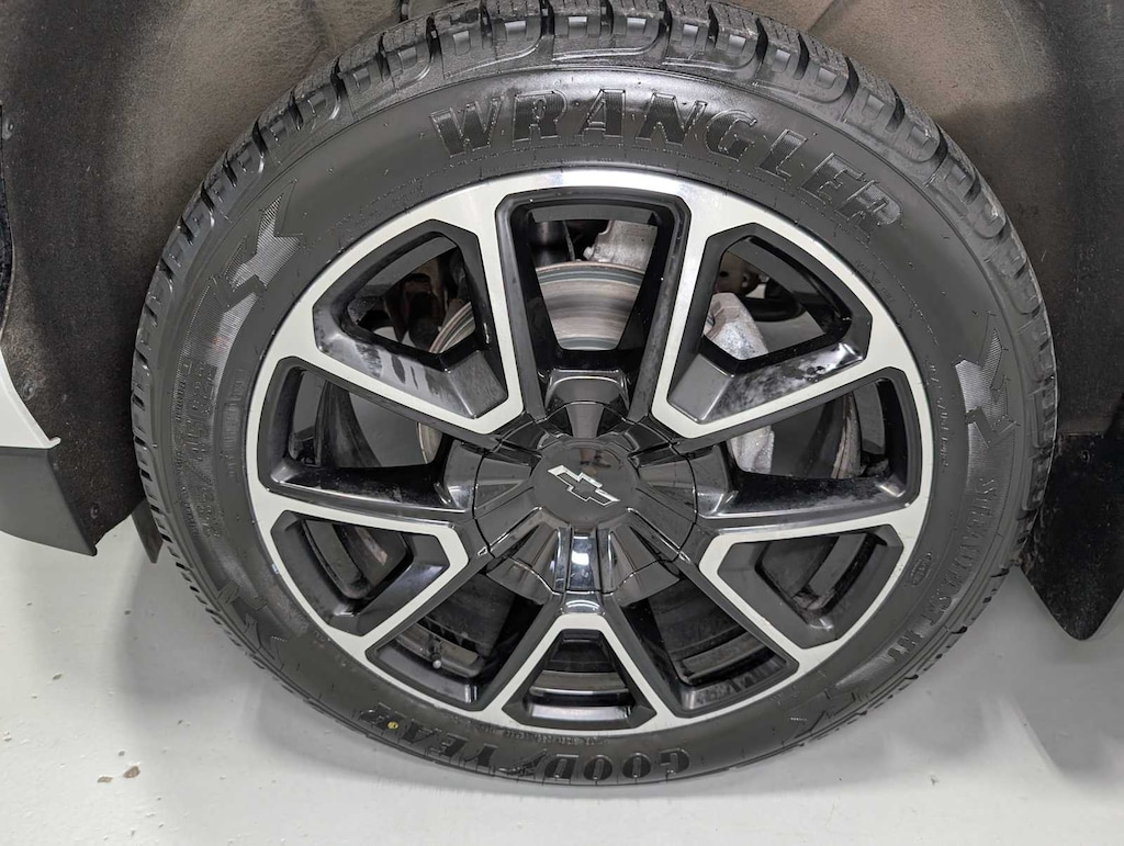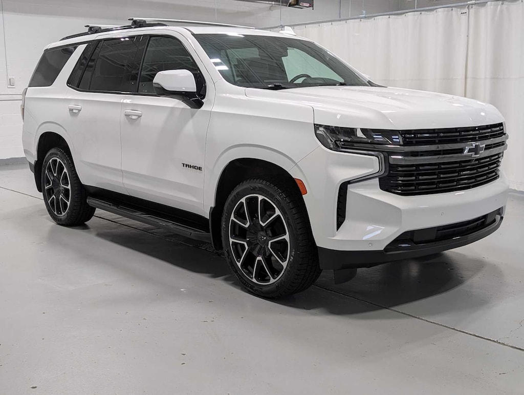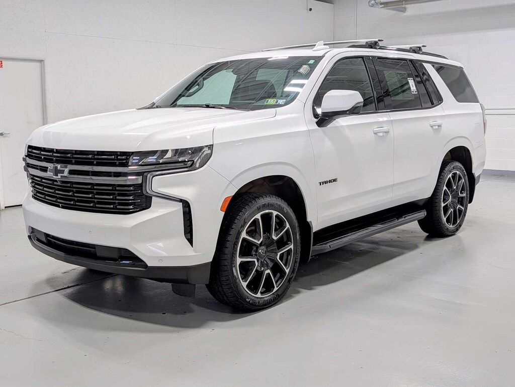 includes (WPD) Driver Alert Package content, (UV2) HD Surround Vision, (UKK) Rear Pedestrian Alert, (A45) memory settings, (DXR) outside heated power-adjustable, power-folding, body-color mirrors with driver-side auto-dimming and integrated turn signal indicators, (N38) power tilt and telescopic steering column, (KI3) heated steering wheel, (KA6) second row outboard heated seats, (ATT) second row power 60/40 split-folding bench seats and (AS8) third row power 60/40 split-folding bench seats Vehicles built prior to December 6, 2021, include heated steering wheel. Certain vehicles built on or after December 6, 2021, will be forced to include (00G) Not Equipped with Heated Steering Wheel, which removes heated steering wheel. Vehicles built prior to March 14, 2022 and after April 17, 2022, with express-open and close and power sunshade, SEATS, SECOND ROW BUCKET, POWER RELEASE, 10.2 diagonal HD color touchscreen, includes multi-touch display, AM/FM stereo, Bluetooth® streaming audio for music and most phones; featuring wireless Android Auto® and Apple CarPlay® capability for compatible phones, advanced voice recognition, in-vehicle apps, personalized profiles for infotainment and vehicle settings (STD), Vehicles built prior to December 6, 2021 and after March 27, 2022, include heated steering wheel. Certain vehicles built on or after December 6, 2021 through March 27, 2022, will be forced to include (00G) Not Equipped with Heated Steering Wheel, which removes heated steering wheel. See dealer for details or the window label for the features on a specific vehicle.), with Dynamic Fuel Management, Direct Injection and Variable Valve Timing, includes aluminum block construction (355 hp [265 kW] @ 5600 rpm, 383 lb-ft of torque [518 Nm] @ 4100 rpm) (STD), electronically controlled with overdrive, includes Traction Select System including tow/haul (Standard with (L84) 5.3L EcoTec3 V8 engine only or (L87) 6.2L EcoTec3 V8 engine only.) (STD), includes (UKC) Lane Change Alert with Side Blind Zone Alert and (UFG) Rear Cross Traffic Alert. 2022 Chevrolet Tahoe with Summit White exterior and Jet Black/Victory Red interior features a 8 Cylinder Engine with 355 HP at 5600 RPM*. Has New Tires