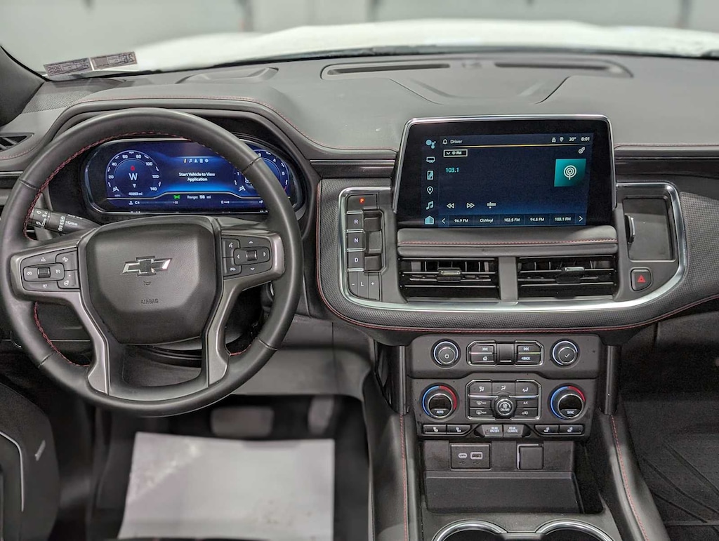 includes (WPD) Driver Alert Package content, (UV2) HD Surround Vision, (UKK) Rear Pedestrian Alert, (A45) memory settings, (DXR) outside heated power-adjustable, power-folding, body-color mirrors with driver-side auto-dimming and integrated turn signal indicators, (N38) power tilt and telescopic steering column, (KI3) heated steering wheel, (KA6) second row outboard heated seats, (ATT) second row power 60/40 split-folding bench seats and (AS8) third row power 60/40 split-folding bench seats Also includes (KSG) Adaptive Cruise Control and (UGN) Enhanced Automatic Emergency Braking. includes dual rear seat-mounted 12.6 diagonal color-touch LCD HD screens, two Bluetooth® headphones with 2 HDMI ports on the back of the center console, with express-open and close and power sunshade, (dealer-installed), (select service plan required, terms and limitations apply), including nav capability, 10.2 diagonal HD color touchscreen, includes multi-touch display, AM/FM stereo, Bluetooth® streaming audio for music and most phones; featuring wireless Apple CarPlay® and wireless Android Auto® capability for compatible phones, advanced voice recognition, in-vehicle apps, personalized profiles for infotainment and vehicle settings (STD), STEERING WHEEL, HEATED, with Dynamic Fuel Management, Direct Injection and Variable Valve Timing, includes aluminum block construction (355 hp [265 kW] @ 5600 rpm, 383 lb-ft of torque [518 Nm] @ 4100 rpm) (STD), electronically controlled with overdrive, includes Traction Select System including tow/haul (STD), includes (UKC) Lane Change Alert with Side Blind Zone Alert and (UFG) Rear Cross Traffic Alert. 2024 Chevrolet Tahoe with Iridescent Pearl Tricoat exterior and Jet Black/Victory Red interior features a 8 Cylinder Engine with 355 HP at 5600 RPM*.