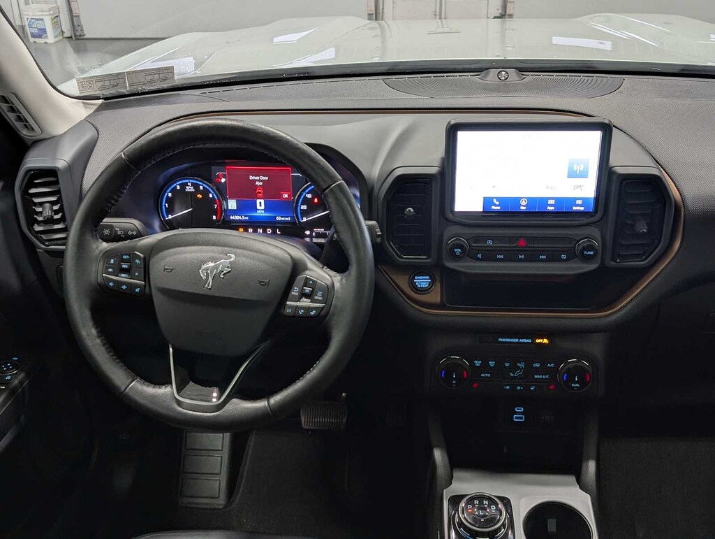 TECH PACKAGE Bang & Olufsen Sound System, 10 speakers and subwoofer, Universal Garage Door Opener (UGDO), Wireless Charging Pad, HD Radio, FORD CO-PILOT360 ASSIST+ Evasive Steering Assist, Voice-Activated Touchscreen Navigation System, pinch-to-zoom capability and SiriusXM Traffic and Travel Link w/a, SiriusXM Traffic and Travel Links services are not available in Alaska and Hawaii, After your trial period ends, SiriusXM audio and data services each require a subscription sold separately, or as a package, by SiriusXM Radio Inc, See SiriusXM customer agreement for complete terms at www.siriusxm.com, All fees and programming subject to change, Trial subscription available in Alaska and Hawaii, Intelligent Adaptive Cruise Control w/Stop & Go, lane centering and speed sign recognition, POWER MOONROOF, CLASS II TRAILER TOW PACKAGE W/TRAILER SWAY CONTROL full size spare, ENGINE: 1.5L ECOBOOST auto start-stop technology (STD). 2022 Ford Bronco Sport with Cactus Gray exterior and Ebony/Roast interior features a 3 Cylinder Engine with 181 HP at 6000 RPM*.