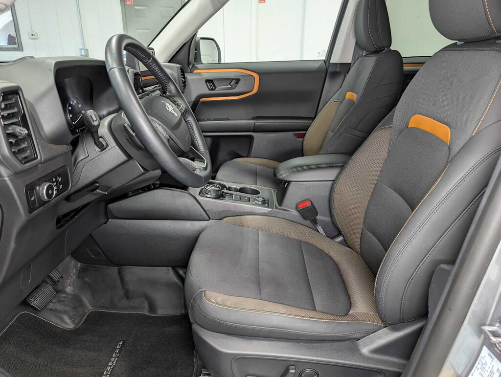 WHEELS: 17 CARBONIZED GRAY-PAINTED ALUM: Low gloss, Tires: 235/65R17 All-Terrain Off-Road, Falken Wildpeak, CLASS II TRAILER TOW PACKAGE W/TRAILER SWAY CONTROL. 2023 Ford Bronco Sport with Iconic Silver Metallic exterior and Ebony/Active Orange interior features a 4 Cylinder Engine with 250 HP at 5500 RPM*. Locally Owned and Traded
