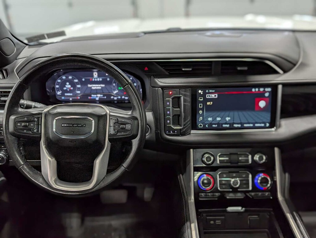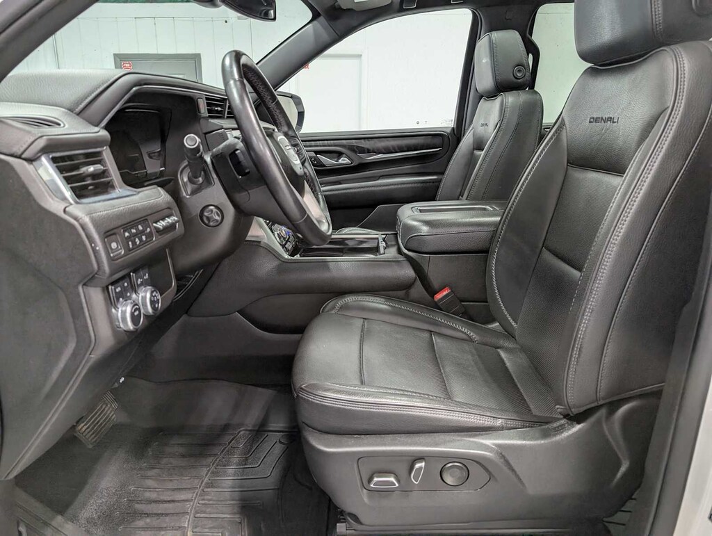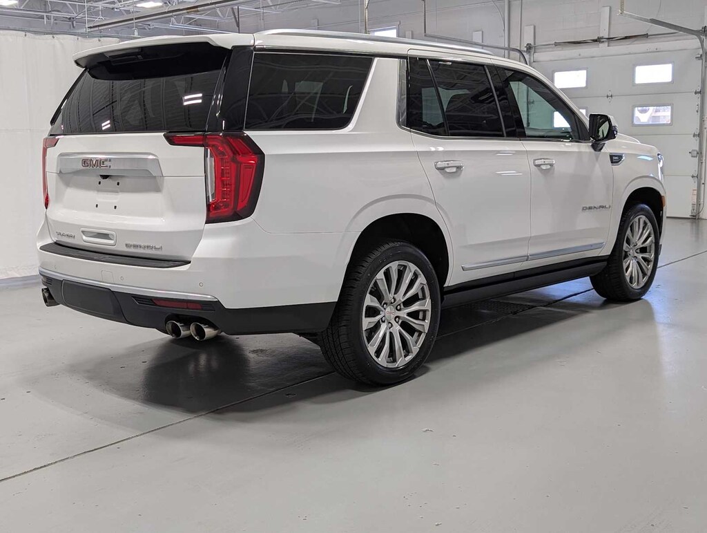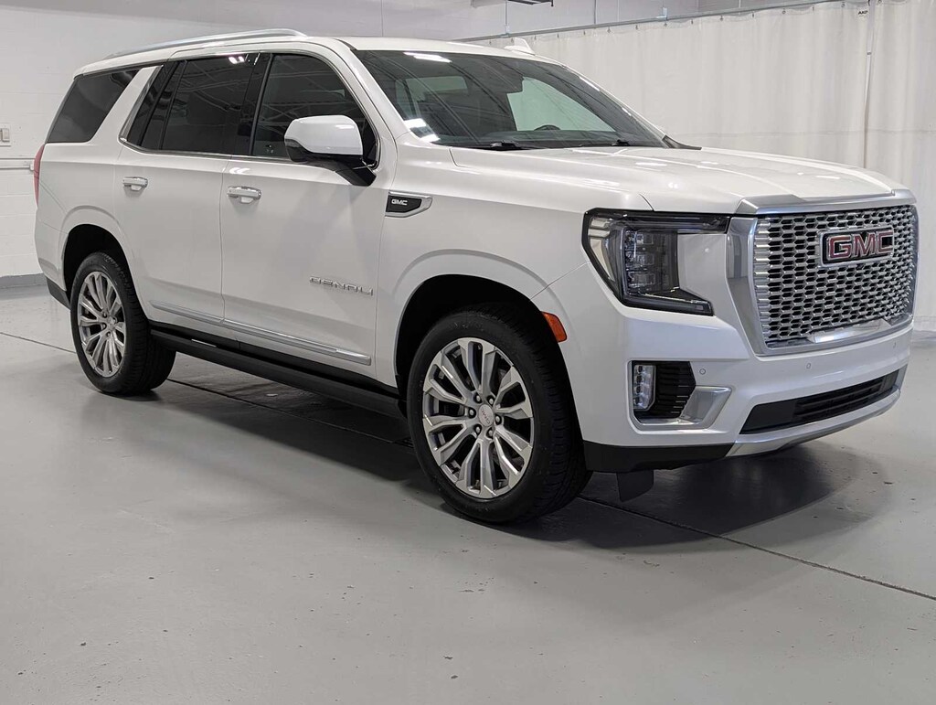 Includes (SFE) wheel locks, LPO.), ASSIST STEPS, POWER-RETRACTABLE WITH PERIMETER LIGHTING, tilt-sliding with express-open and close and power sunshade, see onstar.com for information, includes color touch-screen, multi-touch display, AM/FM stereo, Bluetooth® streaming audio for music and most phones; featuring wireless Android Auto® and Apple CarPlay® capability for compatible phones, advanced voice recognition, in-vehicle apps, personalized profiles for infotainment and vehicle settings (STD), with Dynamic Fuel Management, Direct Injection and Variable Valve Timing, includes aluminum block construction (420 hp [313 kW] @ 5600 rpm, 460 lb-ft of torque [624 Nm] @ 4100 rpm) (STD), electronically controlled with overdrive, includes Traction Select System including tow/haul (STD). 2022 GMC Yukon Denali with White Frost Tricoat exterior and Jet Black interior features a 8 Cylinder Engine with 420 HP at 5600 RPM*. Has New Tires