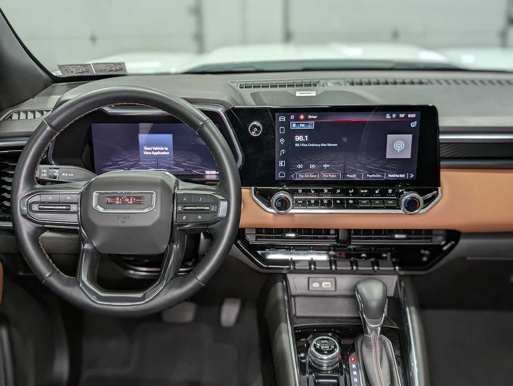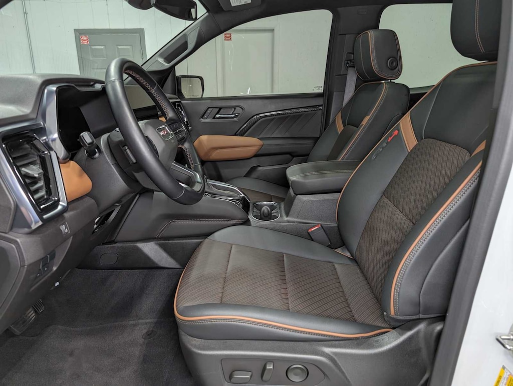 includes (HX6) Jet Black/Timber perforated leather-appointed front seating surfaces, (A45) Driver memory recall, (A7J) 6-way front passenger seat, (AT9) Power Lumbar front passenger seat, (DA5) Rear Seat Center Arm Rest, (E90) Driver seat back pocket, (K4C) Wireless charging, (KI3) heated steering wheel, (KU9) Ventilated driver and front passenger seats and (Y5W) Canyon Safety Plus Package, includes (KSG) Adaptive Cruise Control, (UKK) Rear Pedestrian Alert, (UV2) HD Surround Vision and (UV6) Multicolor 6.3 Diagonal Head-Up Display, with manual shade, with external amplifier, includes (UD7) Rear Park Assist, (UFB) Rear Cross Traffic Braking and (UKI) Blind Zone Steering Assist With (ZL6) ProGrade Trailering System, includes (UKW) Blind Zone Steering Assist with Trailering, (310 hp [231 kW] @ 5600 rpm, 430 lb-ft of torque [583 Nm] @ 3000 rpm) (STD), (STD), includes trailer hitch and 7-pin connector (Includes (JL1) Trailer brake controller. 2024 GMC Canyon with Summit White exterior and Jet Black/Timber interior features a 4 Cylinder Engine with 310 HP at 5600 RPM*. Has New Tires