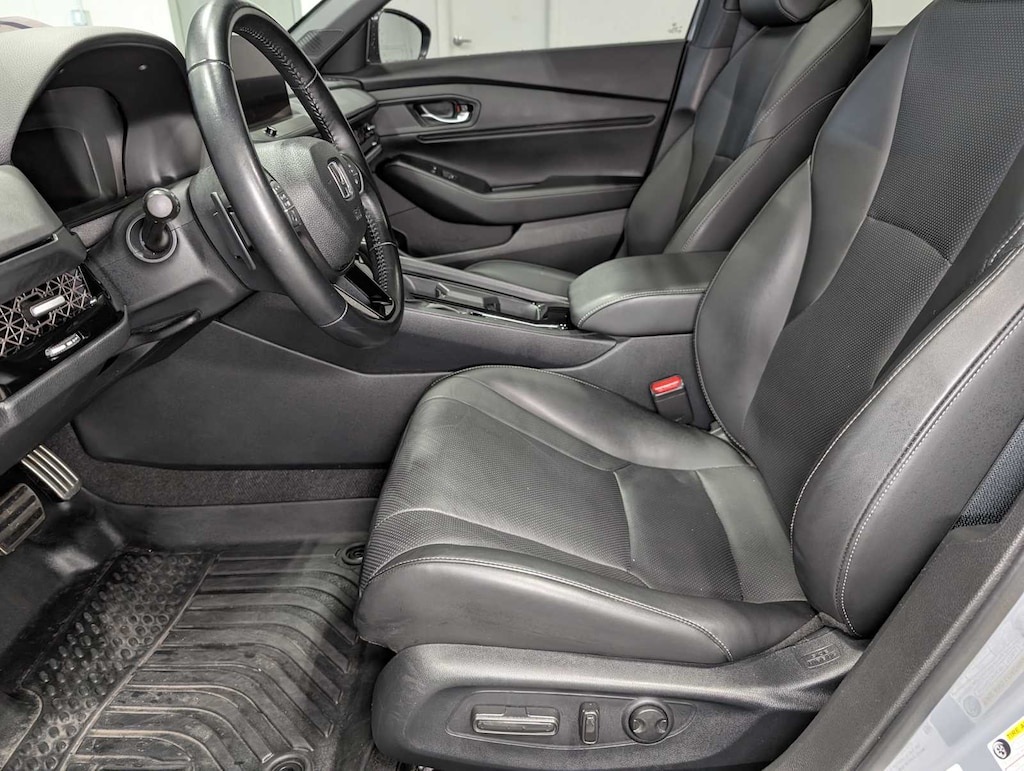 Leather Seats, Moonroof, Heated Driver Seat, Back-Up Camera, iPod/MP3 Input, Onboard Communications System, Aluminum Wheels, Keyless Start, Dual Zone A/C, WiFi Hotspot, Cross-Traffic Alert, Smart Device Integration, Apple CarPlay®, Lane Keeping Assist, Heated Seats Rear Spoiler, MP3 Player, Keyless Entry, Steering Wheel Controls, Child Safety Locks. 2023 Honda Accord with Urban Gray Pearl exterior and Black interior features a 4 Cylinder Engine with 204 HP at 6100 RPM*. Originally bought here