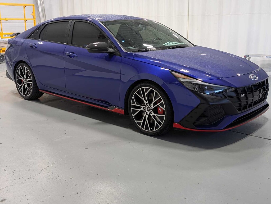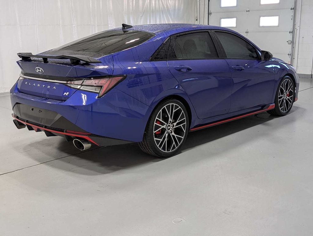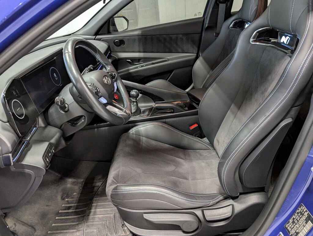standard equipment. 2023 Hyundai Elantra N with Intense Blue exterior and Black w/Blue Stitch interior features a 4 Cylinder Engine with 276 HP at 5500 RPM*. Has New Tires