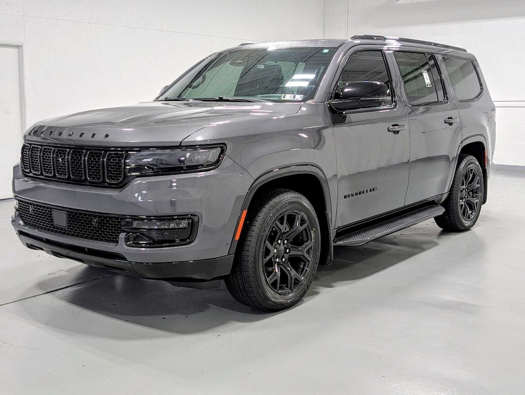Side Distance Warning, Quadra-Lift Air Suspension, Surround View Camera System, Semi Active Damping, Traffic Sign Recognition, Auto High Beam Headlamp Control, 2nd Row Manual Window Shades, Head Up Display, Heated Second Row Seats, P&P Park & Unpark Assist w/Stop System, Drowsy Driver Detection, Intersection Collision Assist System, Engine: 3.0L I6 Hurricane SO Twin Turbo ESS, Transmission: 8-Speed Automatic (8HP75), Reversible Carpet/Vinyl Cargo Mat, Cargo Cover, Black Interior Accents, Carbide Appearance Package, 3 Panel Sunroof, Adjustable Roof Rail Crossbars, Piano Black Exterior Accents, (STD), (STD). 2023 Jeep Wagoneer with Baltic Gray Metallic Clearcoat exterior and Global Black interior features a Straight 6 Cylinder Engine with 420 HP at 5200 RPM*. Has New Tires