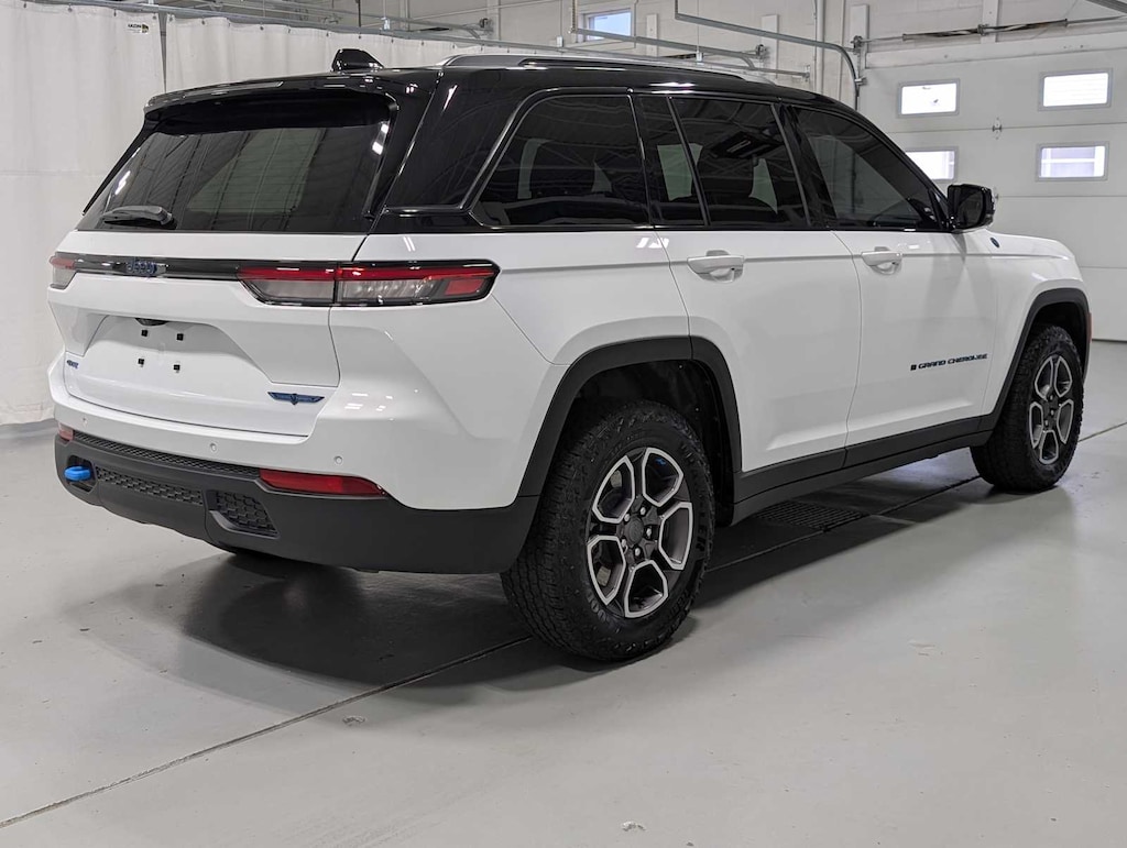 (STD), (STD). 2024 Jeep Grand Cherokee 4xe with Bright White Clearcoat exterior and Global Black interior features a 4 Cylinder Engine with 375 HP at 5250 RPM*.