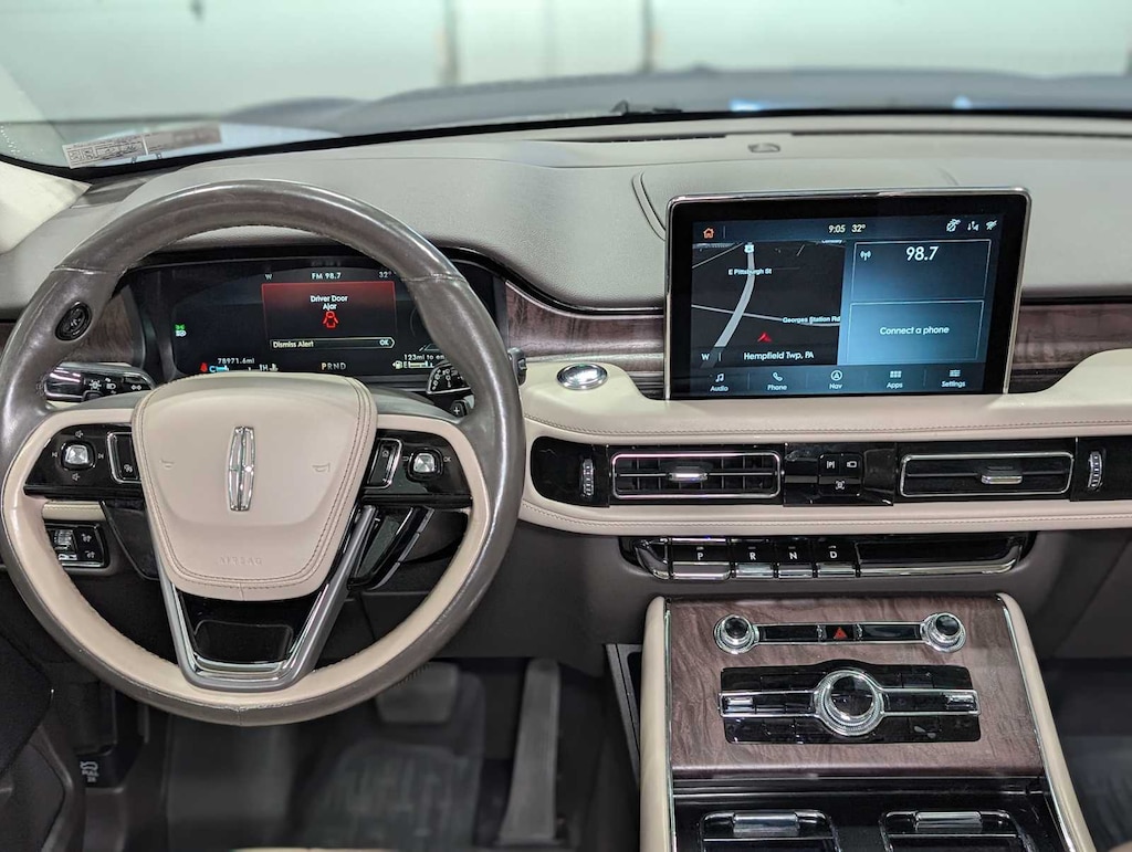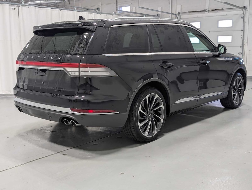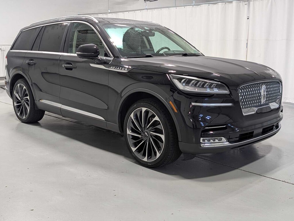 EQUIPMENT GROUP 201A Lincoln Co-Pilot360 Plus, Evasive Steering Assist, Reverse Brake Assist, Adaptive Cruise Control w/Traffic Jam Assist, lane centering, stop-and-go and speed sign recognition, Active Park Assist Plus, Elements Package Plus, Auto Air Refresh, high-efficiency particulate filter and active air monitoring system, Heated/Ventilated 2nd Row Outboard Seats, Heated Steering Wheel, Auto Heated/Ventilated Driver & Passenger Seats, Heated VisioBlade Wipers, WHEELS: 22 BRIGHT-MACHINED ALUMINUM magnetic painted pockets, Tires: 275/40R22 107 W-Rated, CLASS IV TRAILER TOW PACKAGE Blind Spot Detection w/Cross Traffic Alert, trailer coverage, Class IV Hitch & Wiring, Smart Trailer Tow, 4-Pin & 7-Pin Connectors, Trailer Sway Control, ALL-WEATHER FLOOR LINERS W/FR&RR CARPET FLOOR MATS, TRANSMISSION: 10-SPEED AUTOMATIC W/SELECTSHIFT (STD). 2021 Lincoln Aviator with Infinite Black exterior and Sandstone interior features a V6 Cylinder Engine with 400 HP at 5500 RPM*.