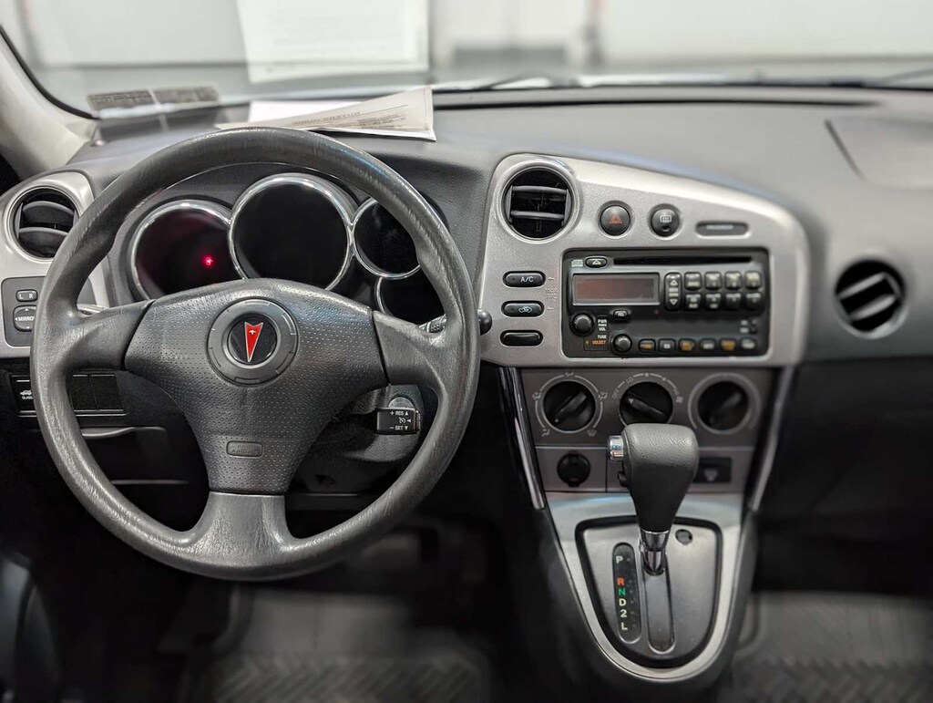 SUN AND SOUND PACKAGE includes (CF5) Sunroof, power, (U65) Sound system feature, 7-speakers, Monsoon and integrated subwoofer, TRANSMISSION, 4-SPEED AUTOMATIC, ELECTRONICALLY CONTROLLED WITH OVERDRIVE, PREFERRED PACKAGE includes (AU0) Keyless Entry, remote, (AU3) Door locks, power (Base and GT), (AU4) Door locks, power programmable (Base and AWD), (A31) Windows, power, (K34) Cruise control, (DC4) Mirror, inside rearview, manual day/night and Lighting, interior, includes illuminated entry with delay (Includes (AU3) Door locks, power only when (MM5) Transmission, 5-speed manual is ordered.), WHEELS, 16 (40.6 CM) CAST ALUMINUM, ENGINE, 1.8L VVT-I, 4-CYLINDER (FWD-126 HP [93.9 kW] @ 6000 rpm, 122 lb.-ft. [164.7 N-m] @ 4200 rpm) (AWD-118 HP [88.8 kW] @ 6000 rpm, 115 lb.-ft. [155.3 N-m] @ 4200 rpm) (STD). 2006 Pontiac Vibe with Platinum (Silver) exterior and Slate interior features a 4 Cylinder Engine with 126 HP at 6000 RPM*. Locally Owned and Traded Clean