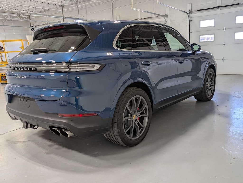 PREMIUM PACKAGE PLUS: Ambient Lighting, Panoramic Roof System, Front Ventilated Seats, Surround View w/Active Parking Support, HD-Matrix Design LED Headlights, Front & Rear Heated Seats, 14-Way Power Seats w/Comfort Memory, Adaptive Cruise Control, 4-Zone Climate Control, BOSE Surround Sound System, WHEELS: 21 CAYENNE EXCL. DESIGN IN VESUVIUS GREY: Tires: 285/45R21 Front & 315/40R21 Rear, PANORAMIC ROOF SYSTEM, EXCLUSIVE DESIGN TAILLIGHTS, MONTEGO BLUE METALLIC, HEATED STEERING WHEEL. 2024 Porsche Cayenne with Montego Blue Metallic exterior and Black interior features a 8 Cylinder Engine with 468 HP at 6000 RPM*.