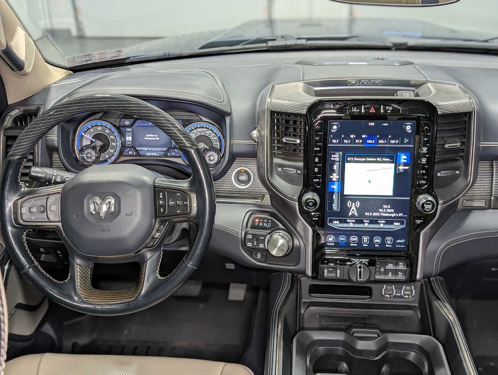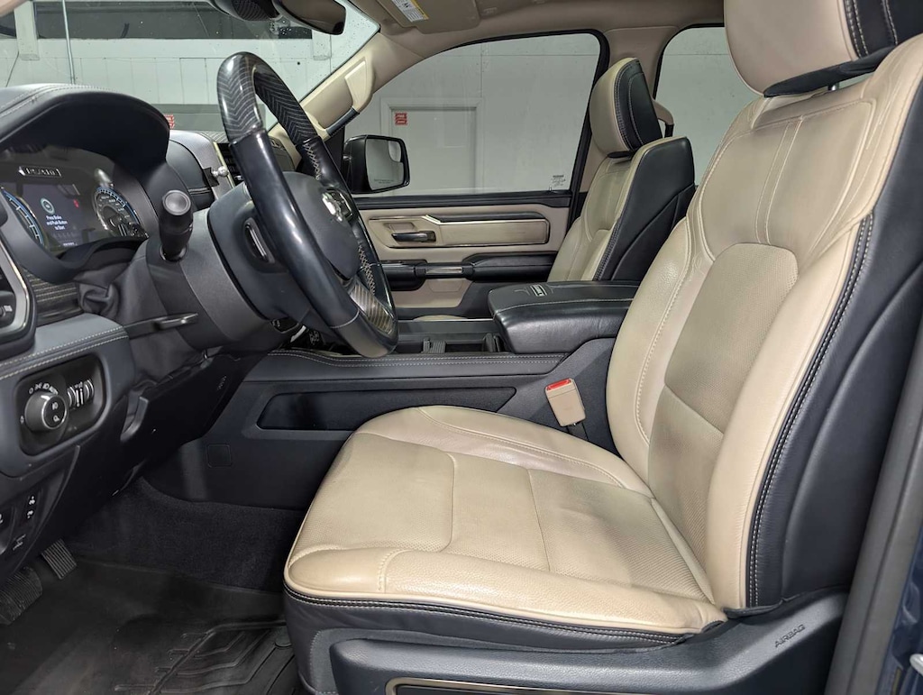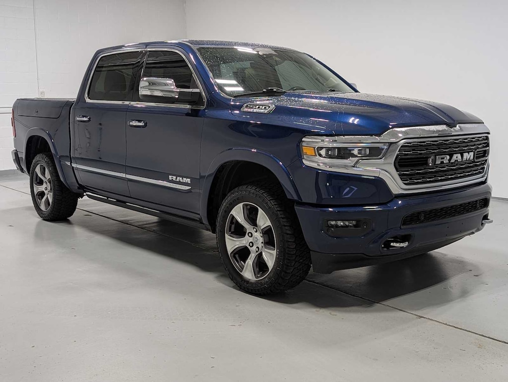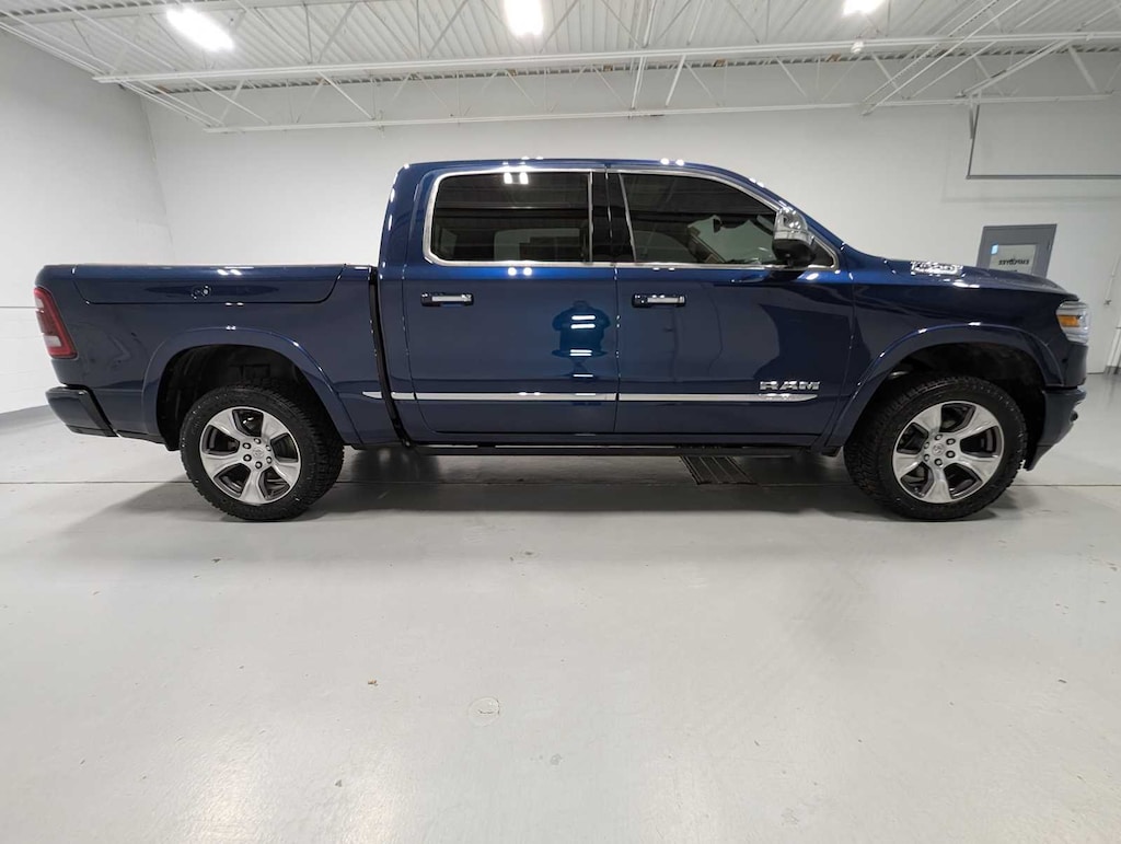 LIMITED LEVEL 1 EQUIPMENT GROUP Adaptive Cruise Control w/Stop & Go, Surround View Camera System, Parallel & Perp Park Assist w/Stop, Ventilated Rear Seats, Pedestrian Emergency Braking, Lane Keep Assist, WHEELS: 22 X 9 POLISH/PAINTED W/INSERTS Tires: 285/45R22XL BSW All Season, DUAL-PANE PANORAMIC SUNROOF LED Dome/Reading Lamp, Dome Dual LED Reading Lamp, TRANSMISSION: 8-SPEED AUTOMATIC (8HP75) (STD), ENGINE: 5.7L V8 HEMI MDS VVT ETORQUE Active Noise Control System, Heavy Duty Engine Cooling, Delete Alternator, Dual Rear Exhaust w/Bright Tips, HEMI Badge, 18 Aluminum Spare Wheel. 2021 Ram 1500 with Patriot Blue Pearlcoat exterior and Indigo/Frost interior features a 8 Cylinder Engine with 395 HP at 5600 RPM*.